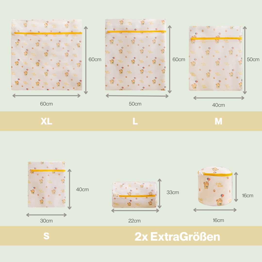 Kein Stress bei Unfällen. Kein peinliches Auspacken. Am Waschtag wirfst du ihn einfach samt Inhalt in die Maschine.